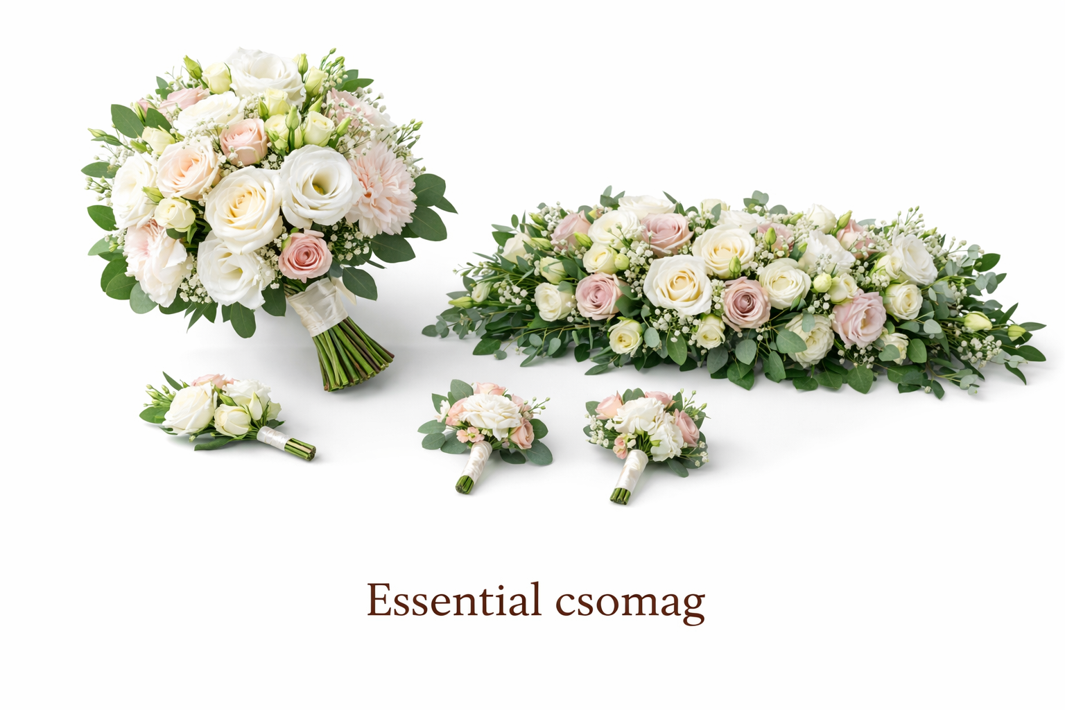Igény esetén minimális mennyiségben nemes zöld (pl. eukaliptusz) is kérhető, amely finoman egészíti ki az összhatást.